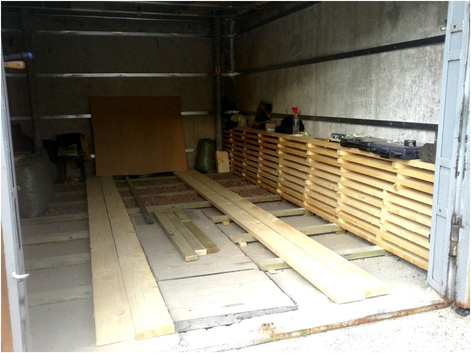 Такую древесину можно свободно укладывать в гараже на пол важно лишь производить ее вскрытие разнообразными антипиретиками и антисептическими составами для предотвращения образования плесени, грибка и защиты от возгораний