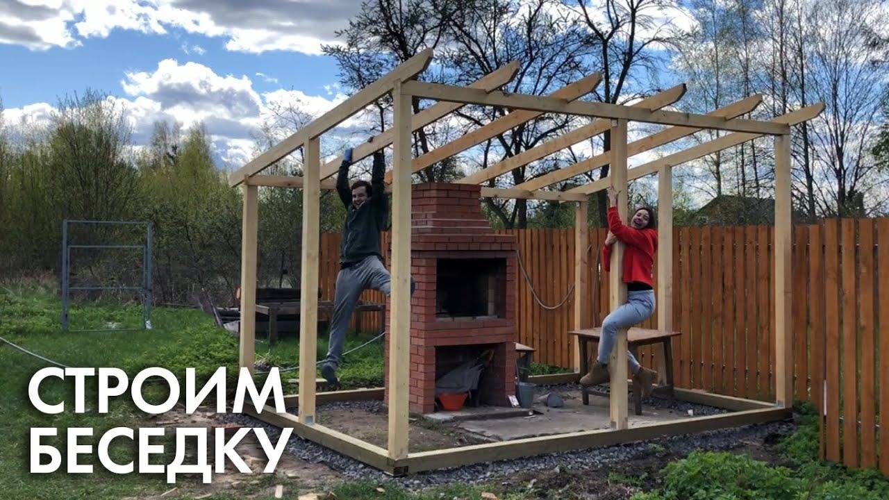 (2) После этого приступают к возведению стен. Если летняя кухня предполагается полностью деревянной, в виде беседки, то выстраивается каркас, на который кладется кровля.