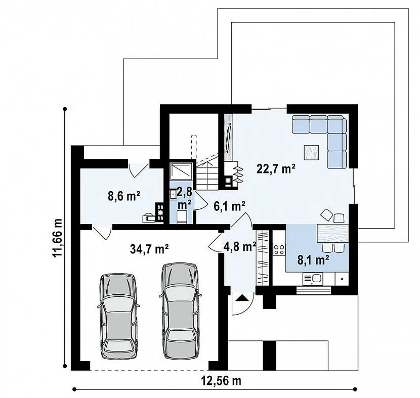 Таким образом, можно рассчитать стандартные размеры гаража на 2 машины.