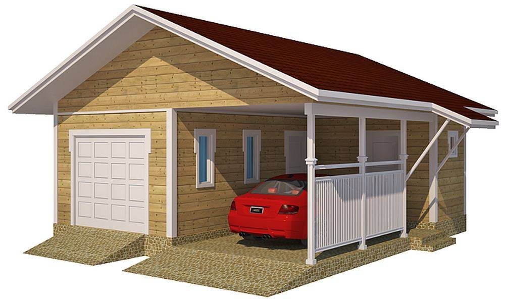 Стоянку с навесом у одной из стен постройки проектируют заранее так, чтобы она учитывала её расположение и положение заезда на участок. Высоту ворот подбирают с учетом возможного приобретения высокой машины.