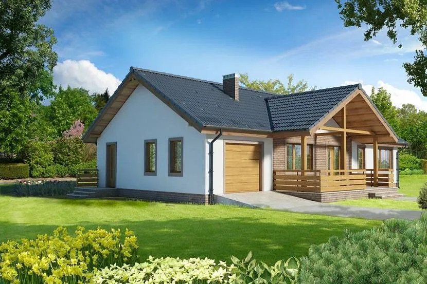 Одноэтажный дом с гаражом и террасой или верандойИсточник nkkconsult.ru