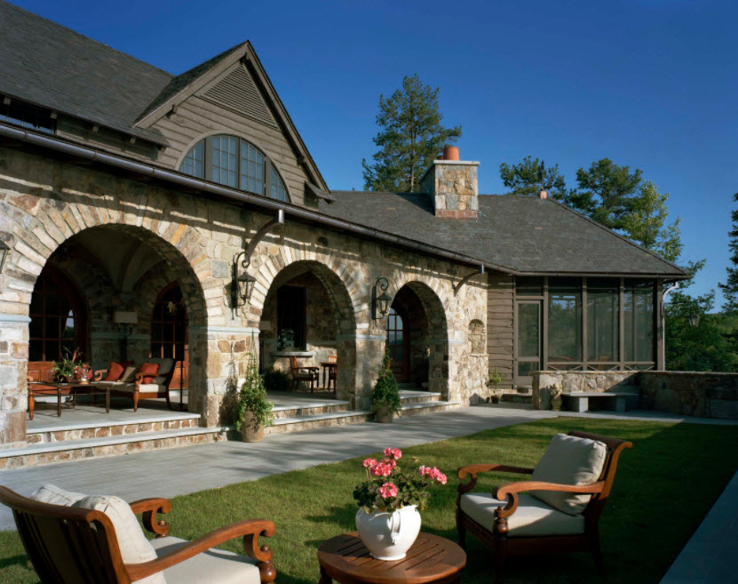 Помимо того, терраса позволяет тесно связать окружающий ландшафт с частным домом. Причем вы сами решите, на что именно будете смотреть – на сад, на лес, на озеро и проч. С террасы намного удобнее созерцать окружающие красоты, чем из окна.
