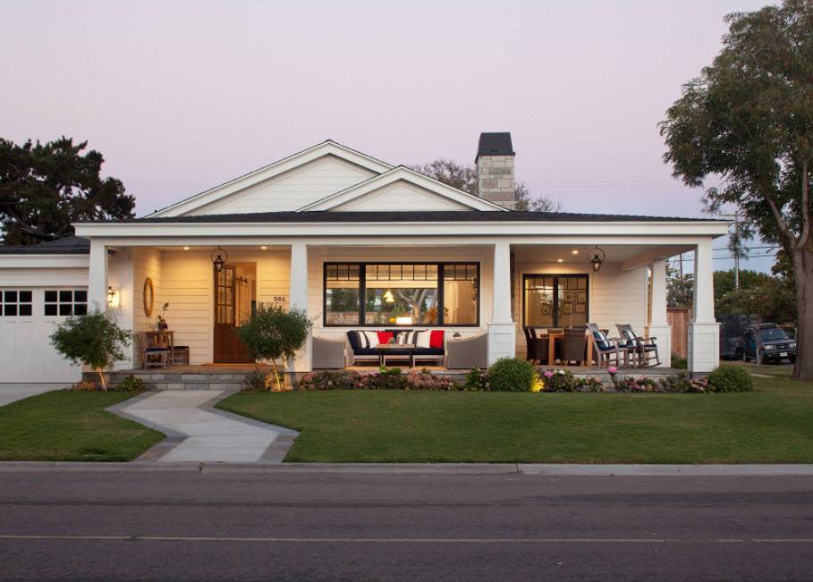 Одноэтажные дома идеальны, если вам нужен небольшой домик. Дача , например. Или у вас небольшая семья и нет необходимости в личном пространстве для всех. Если же вам нужен большой дом, но обязательно в один этаж, то придется пожертвовать размерами сада. Потому большие одноэтажные дома предпочитают владельцы просторных участков.
