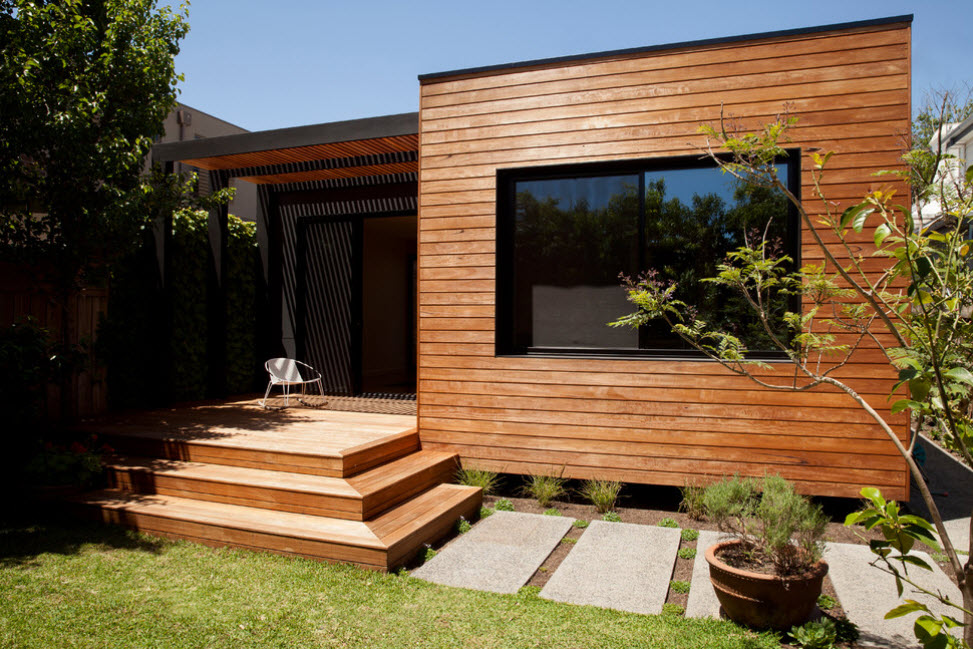 Компоновка и эскизный проект одноэтажного домаЭкстерьер дома в стиле минимализмОдноэтажный дом с террасойЭкстерьер маленького деревянного дома