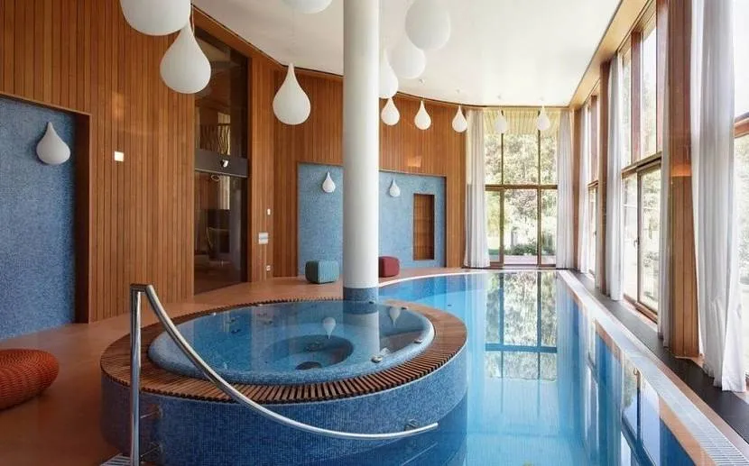 Планировка дома с бассейном, как правило, включает наличие душевых, раздевалок, сауны в непосредственной близости. Чтобы принять решение о строительстве такого дома нужно провести оценку земельного участка и уровня подземных вод. Далее, в плане дома с бассейном предусматривается оборудование чаши, ее гидроизоляция, организация системы насосов, очистительных фильтров, подогрев воды. В помещении необходимо отопление, освещение, качественная вентиляция.