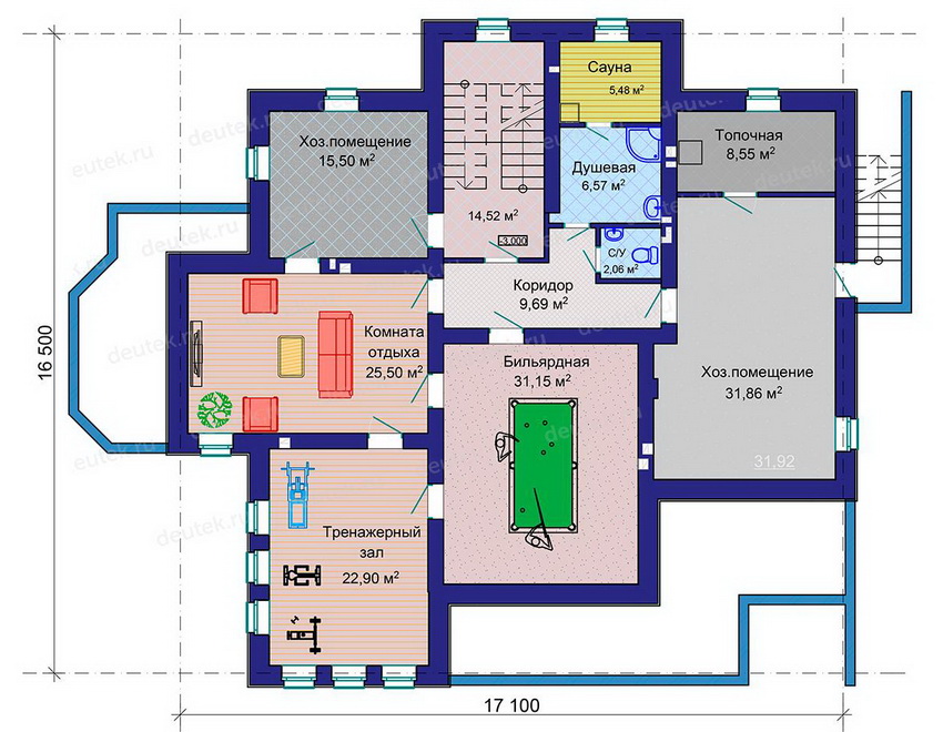 - Это оптимальное помещение для теплого гаража, кладовки, топочной или автомастерской, бассейна, биллиардной или бани.