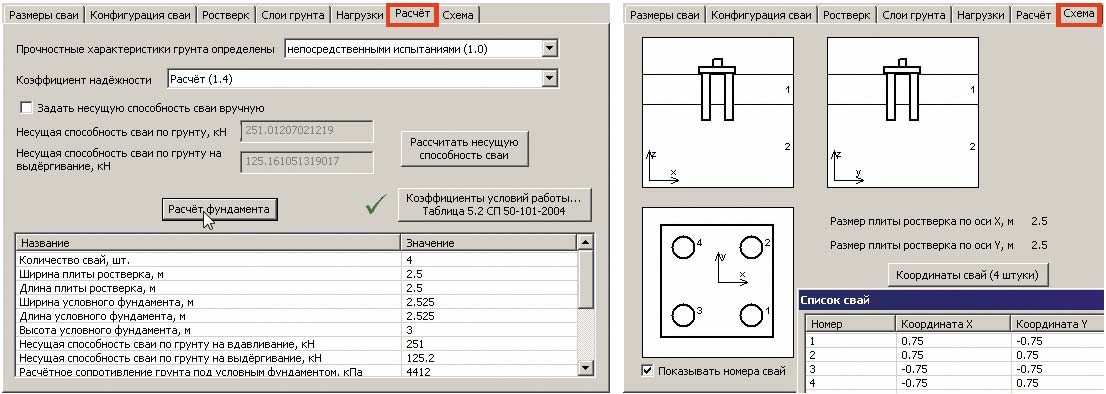 Результат округляется до целого числа свай. Например: NI = 1500 кН, Nd = 430 кН, тогда 3,488 шт, принимаем n = 4 шт.