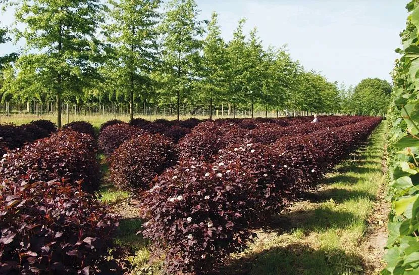 Пузыреплодник калинолистный Diabolo – эффектный сорт с темно-пурпурными глянцевыми листьями равномерной окраски и густой пышной кроной.