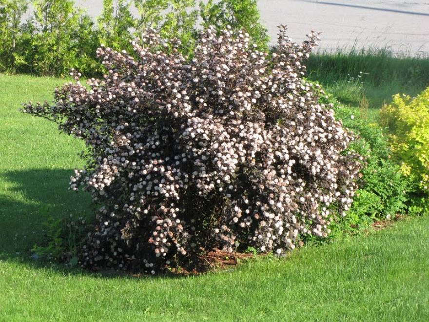 - пузыреплодник краснолистный, или пузыреплодник Диабло представляет собой кустарник высотой до 3 м с темно-красными или пурпурными листьями. Посадка пузыреплодника Диабло и уход за ним абсолютно соответствует нашим рекомендациям с поправкой на то, что при выращивании на ярком солнце листья у него красные, а в тени зеленые с пурпурным оттенком. Характерно, что с наступлением осени цвет листьев не меняется. Это самый востребованный сорт пузыреплодника калинолистного;