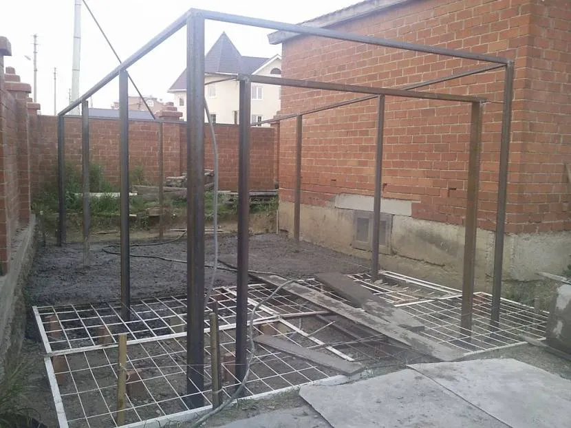 Каркас гаража собирается при помощи крепежных элементов или сваркиИсточник www.drive2.ru