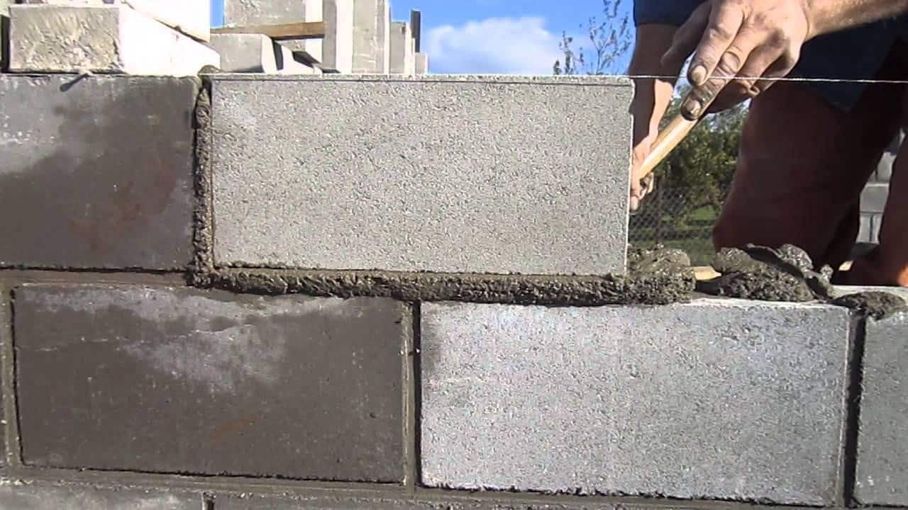 Блок нужно класть так, чтобы его верхний угол «смотрел» в нитку, но не вплотную, а на расстоянии 2 мм. Если приложить блок вплотную, то нитка продавится и ряд получится дугой. Ведя кладку по нитке, Вы никогда не ошибётесь.