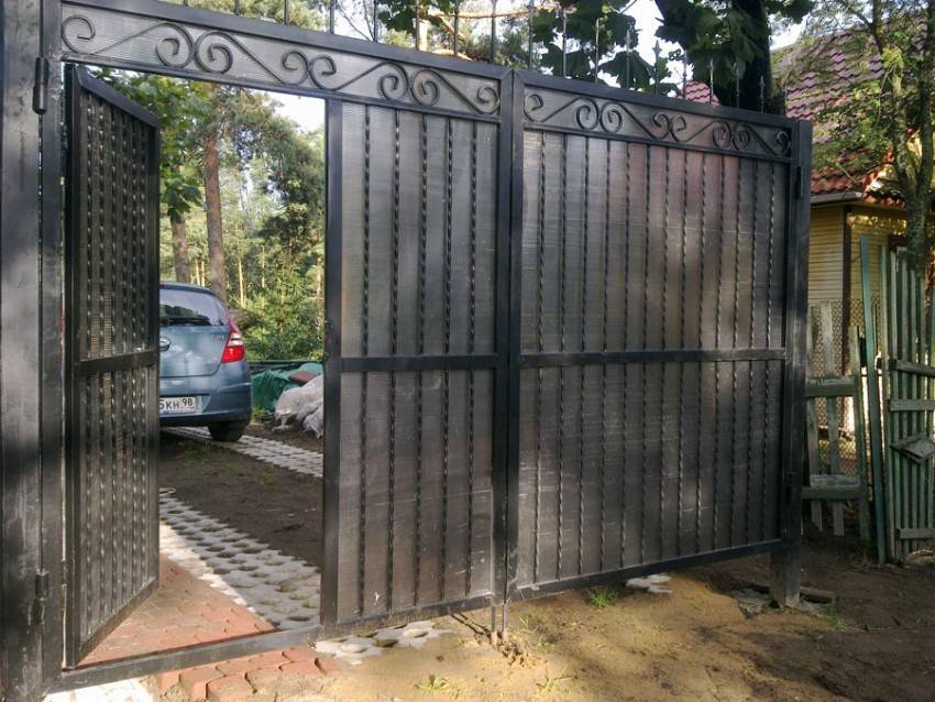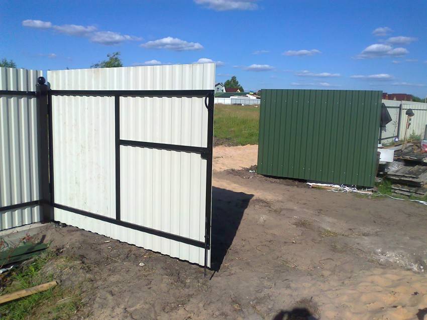 Каркас обычно делается из металлопрофиля и уголка. В створку иногда устанавливают калитку.