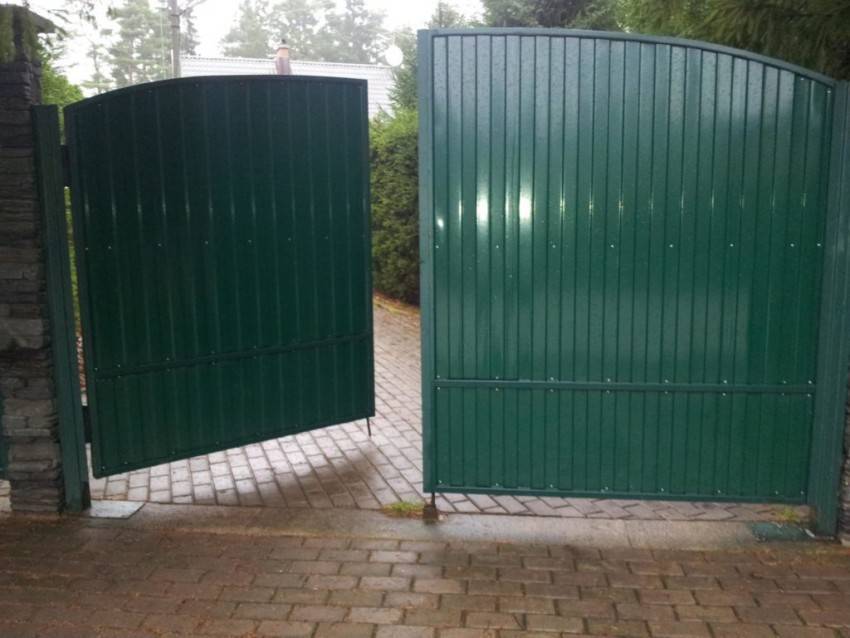 Автоматические распашные ворота часто делают из профнастила