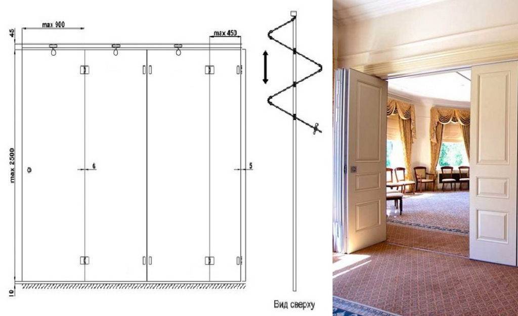 В соотношении с конструкцией перегородок раздвижного типа их разделяют на:
