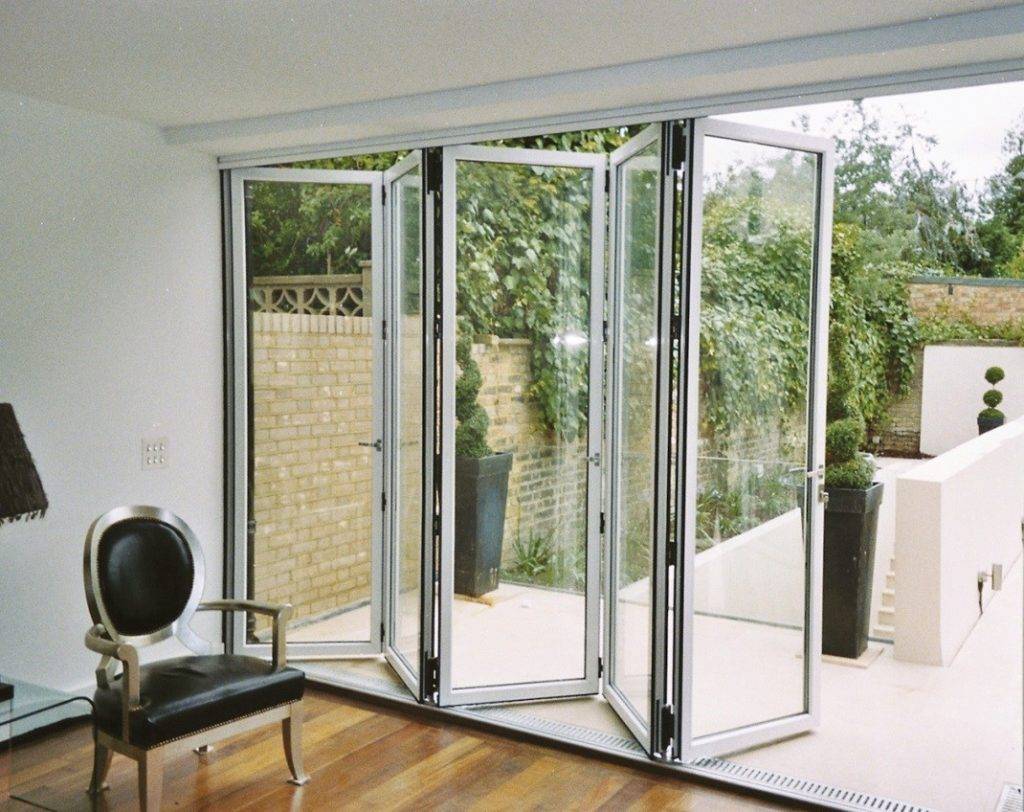 Есть еще и подъемно-раздвижные конструкции. Стеклопакеты в них также прячутся в примыкающую стену, но при этом они одновременно немного поднимаются и передвигаются по треку. Такой вид стеклянного дверного полотна считается наиболее оптимальным и дорогим для создания цельной стеклянной стены.