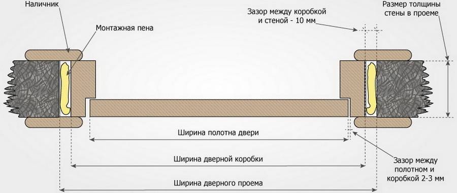 Поэтому размеры толщины коробки для деревянной межкомнатной двери с полотном на 800 подбираются под каждый проем индивидуально. Даже если она немного меньше толщины стены прохода, дополнительно приобретаются и устанавливаются специальные доборные элементы.