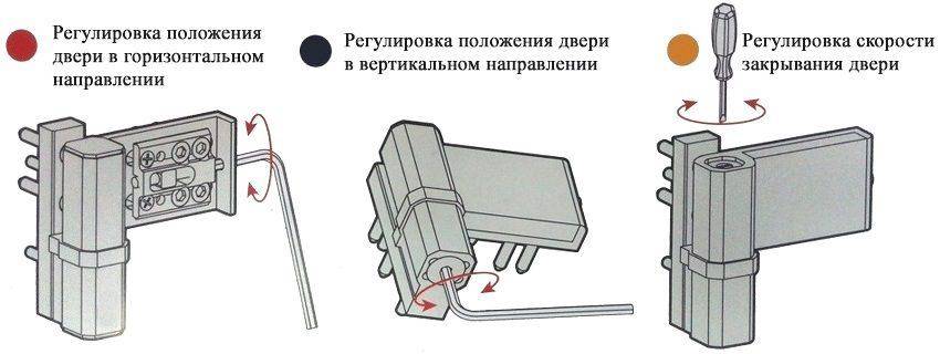 Если не закрывается пластиковая дверь, задевает дверную коробку в средней части или по всей длине, то требуется подтянуть механизм самостоятельно на один или пару оборотов во всех петлях. Если же дверное полотно цепляется только за порог в дальней от петель части, то винты подкрутить надо только в верхних петлях, нижнюю оставляют без изменений.