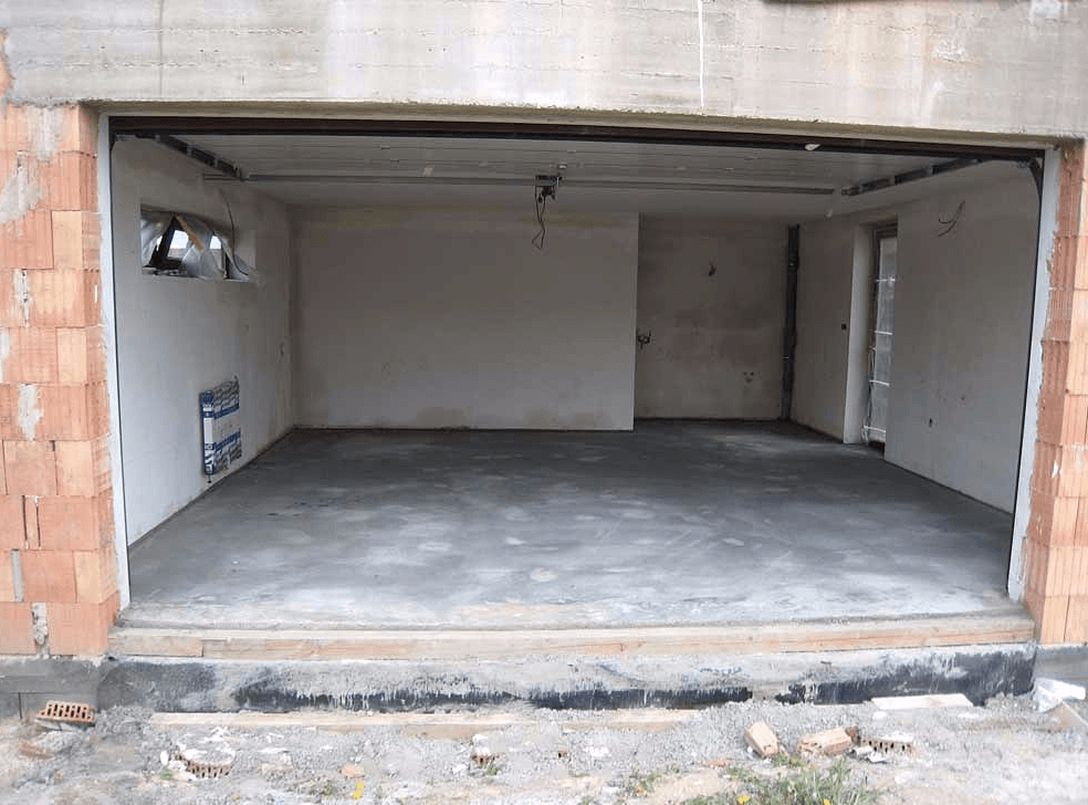 Обычно гаражи устанавливают на мелко заглубленном ленточном фундаменте, а стяжку пола делают по грунту.