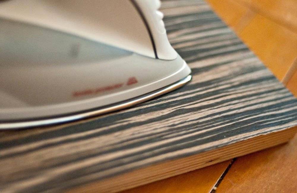 - Активировать клей с помощью нагревания. Для этого используется утюг, выставленный на минимальный режим температуры. Выпуклость проглаживается до тех пор, пока не произойдет соединение поверхностей.