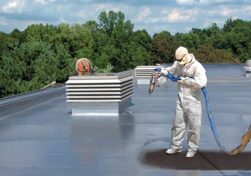 Положительной стороной этого способа является качественное покрытие, а также быстрая скорость выполнения работы. Некоторые строители используют на устройстве дополнительную насадку, которая позволяет распылять жидкую резину. Минусом будет то, что толщина распределяется неравномерно. Чтобы выровнять необходимо заморочиться.