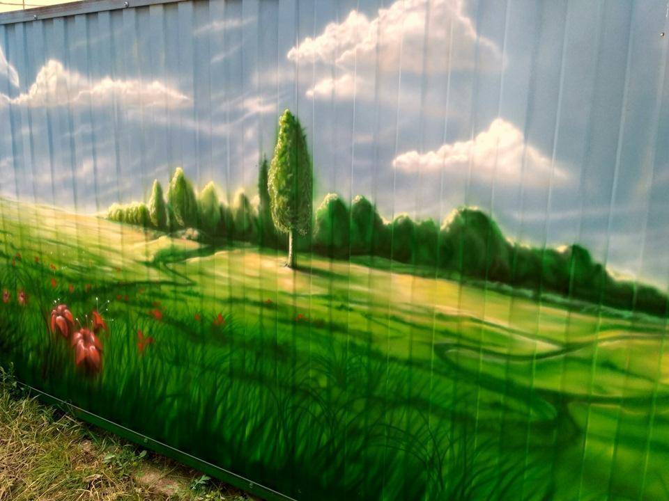 Совершенно новое направление в дизайне приусадебных участков – нанесение рисунков на ограждения методом аэрографии. Конечно, все видели красиво раскрашенные автомобили на улицах городов и поселков. Этот же метод применяется для того, чтобы выполнить оригинальные и реалистичные рисунки на даче на заборе.