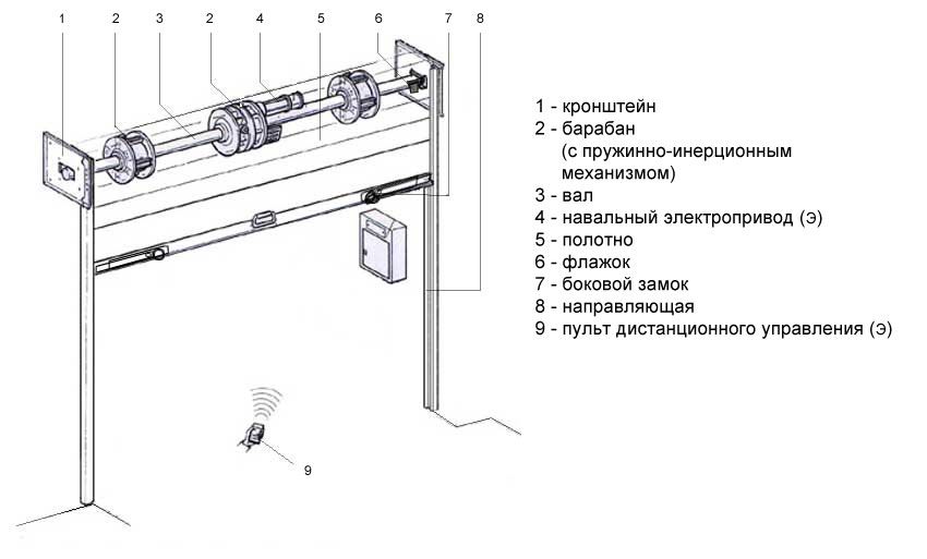 Под действием тяговой силы электропривода заградительное полотно поднимается (опускается) по специальным боковым направляющим. Причем автоматические рулонные ворота в случае аварии (или других происшествий) могут управляться вручную. Выполнить такие действия помогает установленная аварийная система подъема.