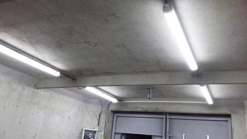 Освещение является важной частью внутреннего обустройства гаража, без которого работа в позднее время невозможна. Идеальным вариантом будет естественное освещение, поэтому нужно подумать о проекте окон в рабочей зоне. Для электроосвещения необходимый минимум таков: