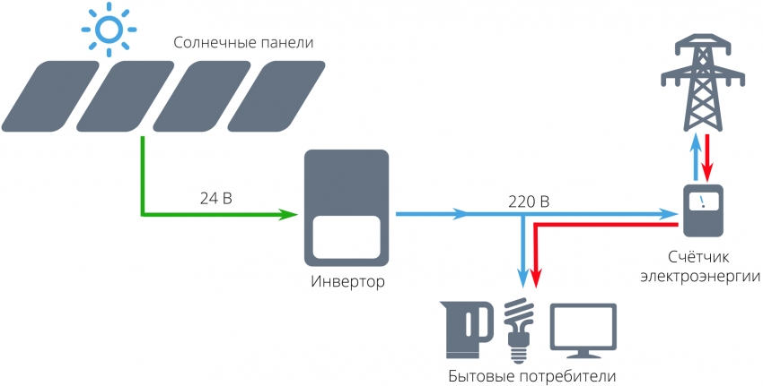 - общего сопротивления приборов, которые подключены к солнечной панели.