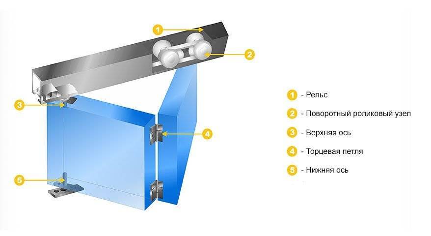 Основной особенностью складных дверей выступает механизм, отвечающий за ее открывание. Он включает: