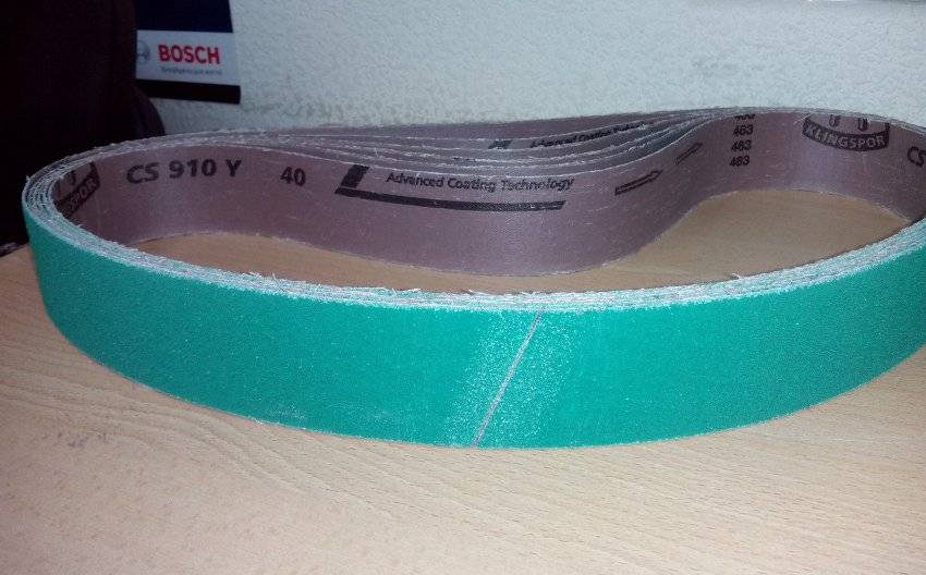 Лучше использовать заводские ленты, которые имеют стандартные размеры в длину 610, 915, 1230 мм, по ширине 50 и 100 мм. Тогда не придется думать о самостоятельном изготовлении. Любой вариант наждачного ремня должен соответствовать требованиям: