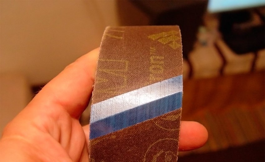 И, наконец, особое внимание необходимо уделить месту склейки абразивной ленты. Стык двух концов полосы должен быть максимально аккуратным, без каких-либо дефектов или выступов