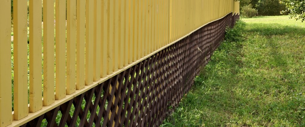 Если решетка большого размера, такой забор может служить основанием для живой изгороди с вьющимися растениями, цветами.