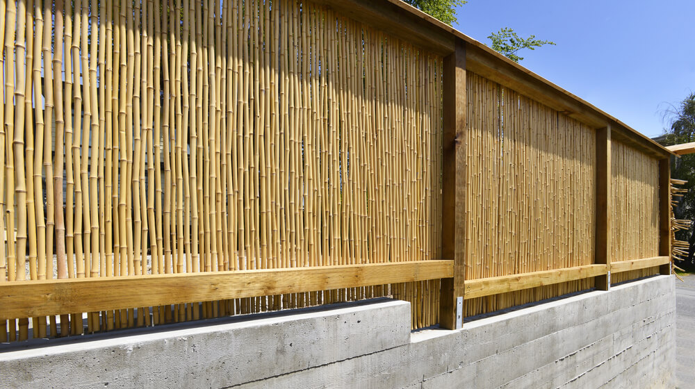Экостиль общего оформления ландшафта поддерживает ограждение из бамбука.