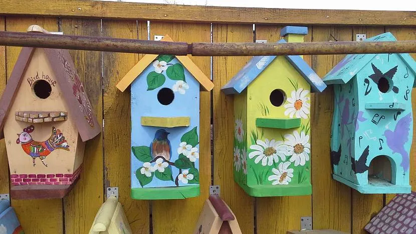 Обычный однотонный деревянный забор можно украсить при помощи ярких цветовых деталей. Для этих целей подойдет любой хлам, найденный в сарае: старые деревянные скворечники, детские игрушки, лыжи, искусственные цветы. Единственное требование к декоративным элементам – достаточная прочность, небольшой вес и устойчивость к атмосферному воздействию.