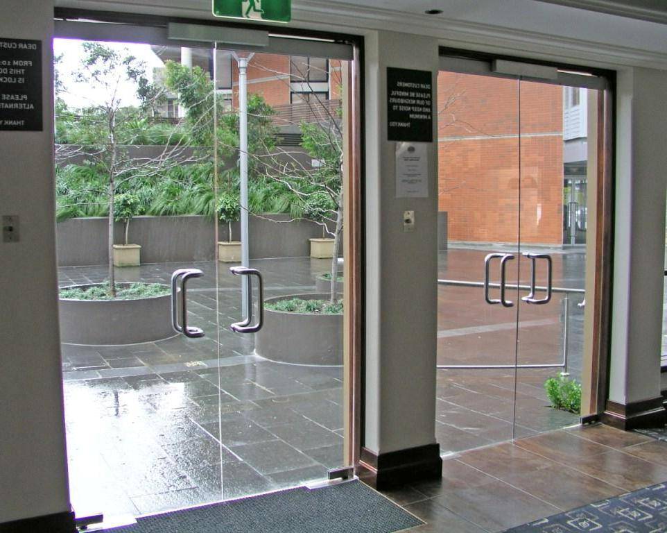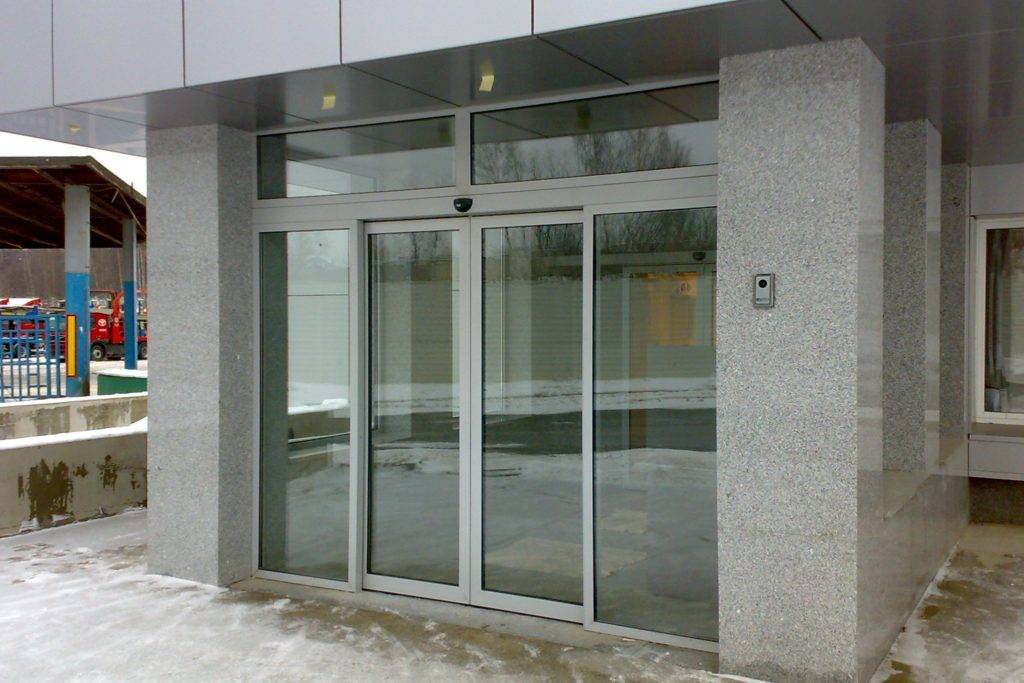 Раздвижная модель стеклянных дверей устанавливается в основном для общественных зданий. Такие двери могут открываться вручную или с помощью автоматики. Пример таких изделий можно увидеть в офисах, магазинах, супермаркетах и ??т.д.