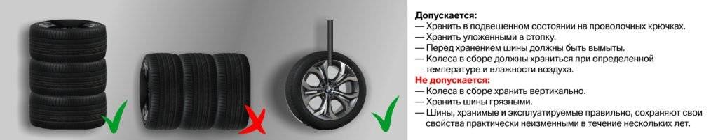 - разрешается хранить колеса в подвешенном состоянии, нанизав их на веревку или металлический трос.