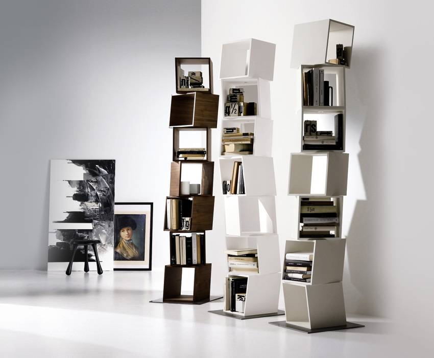 Стеллаж-башня – высокий и узкий, подходит для рабочего кабинета, гостинойИсточник mebelishka.com