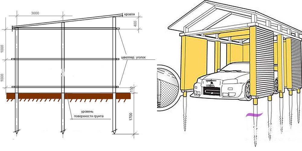 Здесь во внимание принимаются вес автомобиля, масса всего строения, включая кровельную конструкцию, а также ветровые и снеговые нагрузки