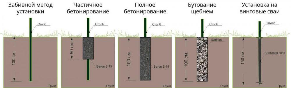 - В ямы размещают и выравнивают столбы, после чего их заполняют раствором с забутовкой;