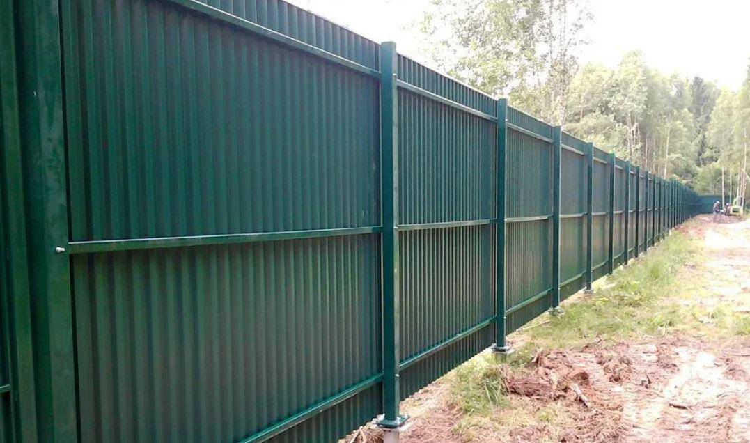 В этом случае их крепят напрямую к столбам и располагают горизонтально. Этот способ не очень хорош, так как позволяет злоумышленникам перелезть через забор, используя углубления в профиле как ступени. Применяется для временных заборов и ограждения выгонов, для заборов небольшой высоты. Далее будут рассмотрены заборы первого типа.