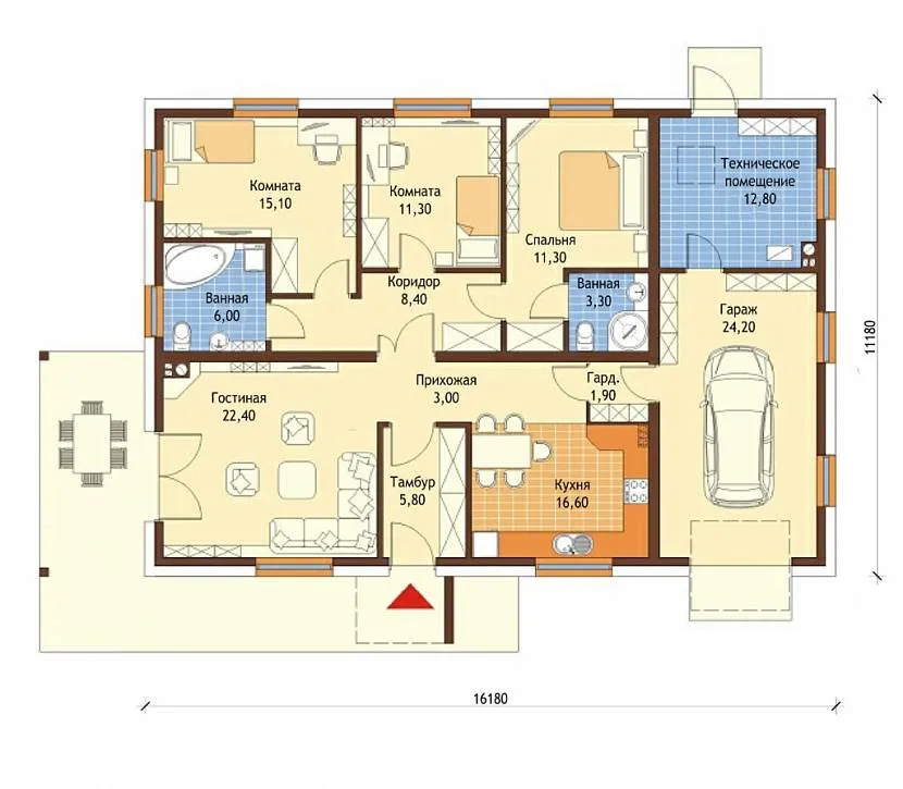 Эти же пункты включает в себя и типовые проекты домов одноэтажных с гаражом.