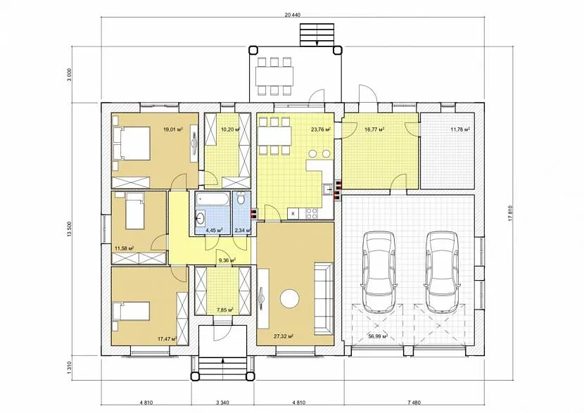 План дома с гаражом на две машиныИсточник belgorodproekt.ru