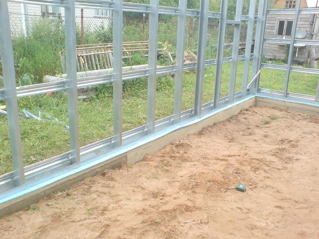 - По центру этот каркас усиливается металлическими профилями, проложенными из угла в угол.