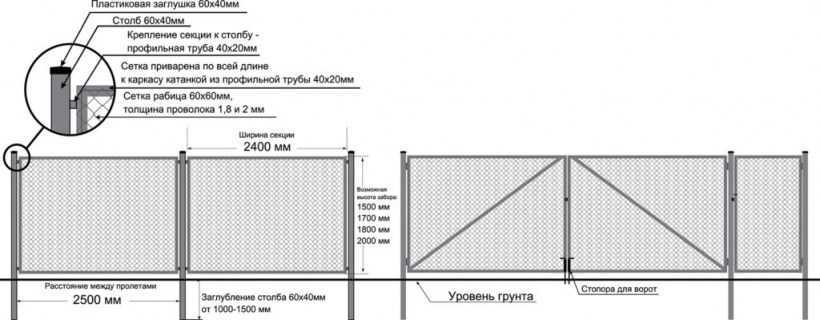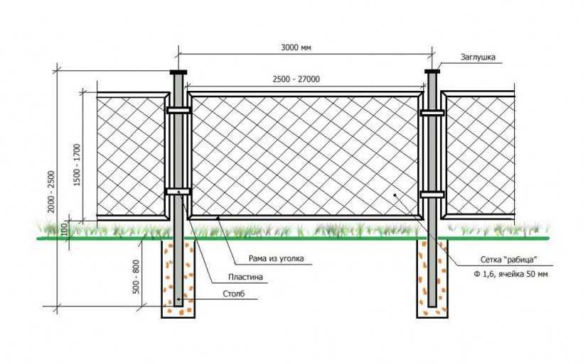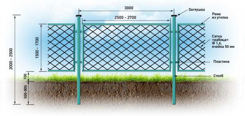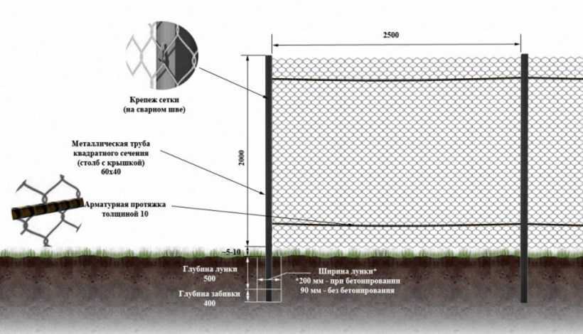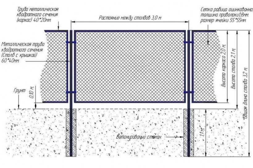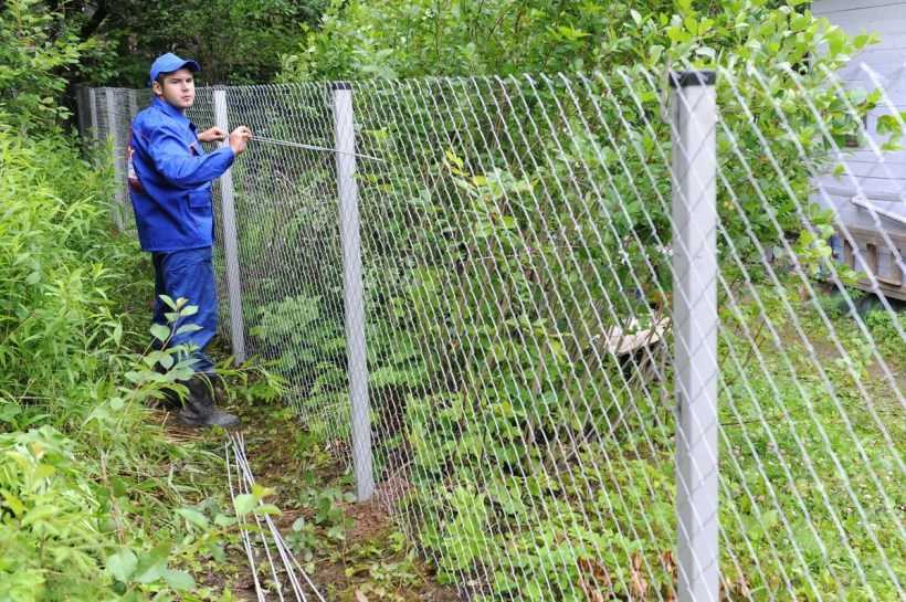 Монтаж забора из сетки рабицы