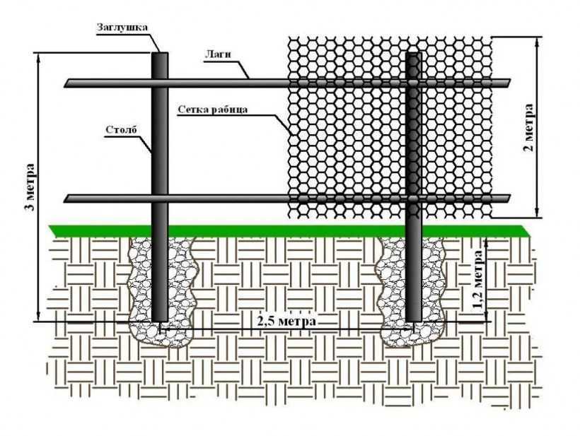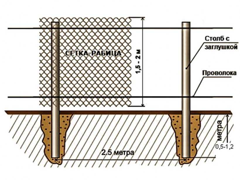 - Ямы для установки опор копают на расстоянии 2-2,5 метров.
