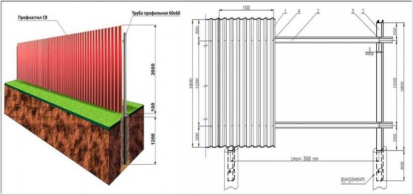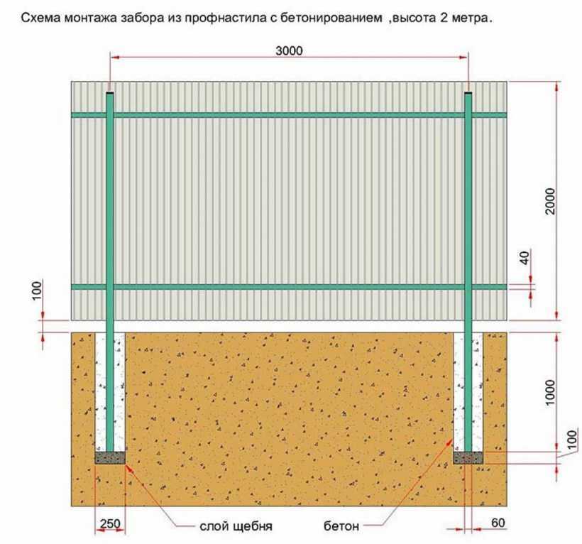 Забор из профлиста на ленточном фундаменте