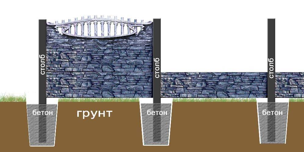 - столбы. Это специальные опоры, также отлитые из бетона, которые устанавливают с шагом в 2 м (один пролет) и высотой от 1,5 м до 2 м.