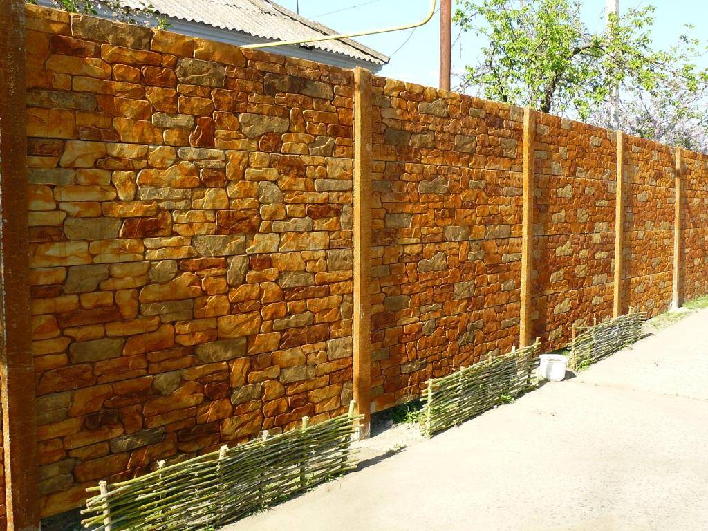 Обычно из кирпича сооружают столбы, фундамент и другие несущие конструкции. Профилированные листы, штакетник, металлические сварные или кованые конструкции используют для изготовления секций.