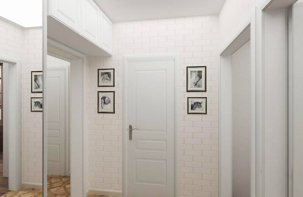 Вариант для малогабаритных помещений, которые светлая гамма визуально увеличивает. Наибольший эффект дает сочетание белой двери в прихожей и светлого пола.