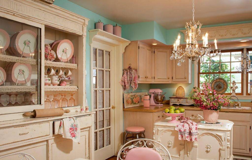 Мебель в помещении тоже должна быть светлых тонов. При этом все предметы интерьера рекомендуется искусственно состарить.